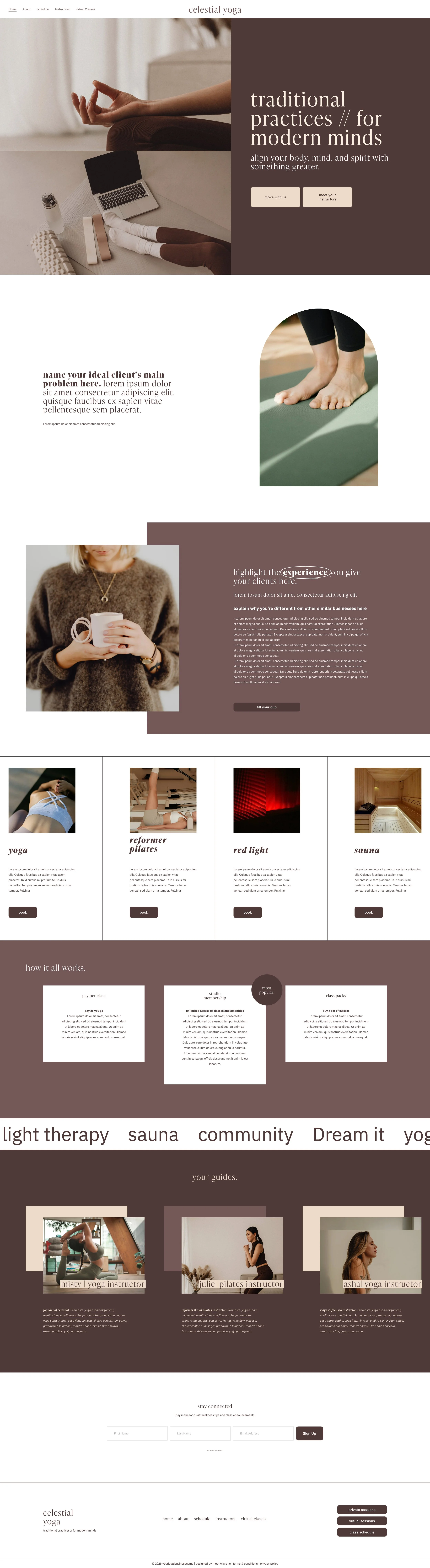 The perfect template for wellness-based providers, yet fully customizable for any type of business. Inspired by the warmth of a cozy yoga studio.